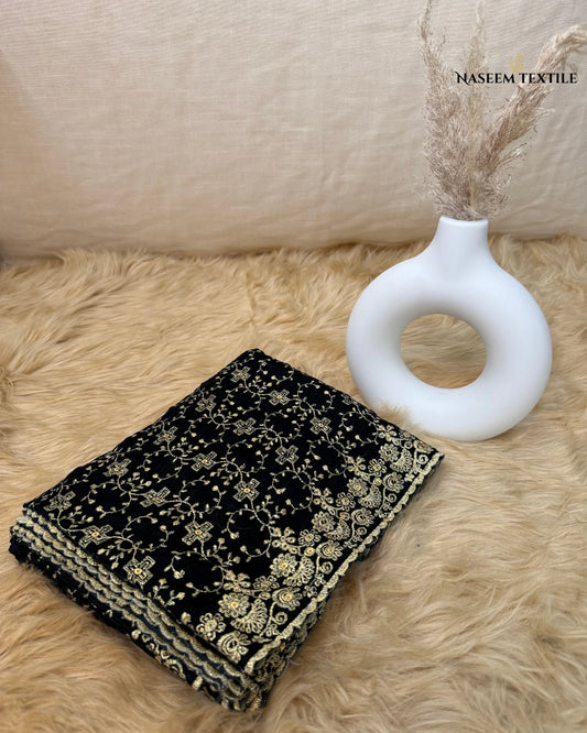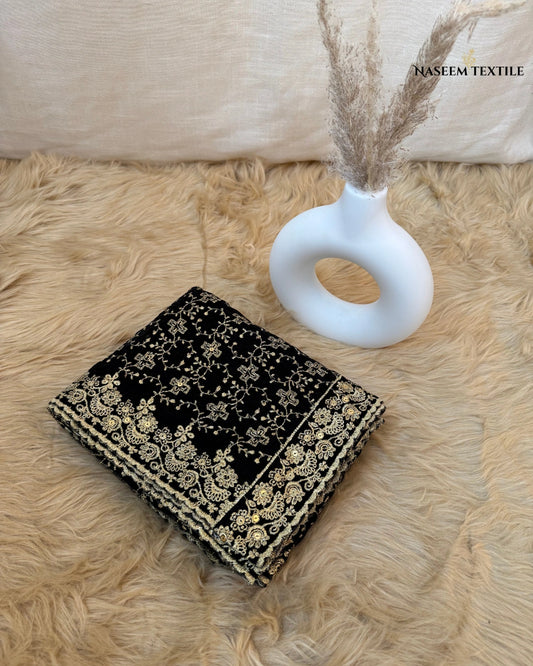 Black Embroidered Velvet Shawl – Luxe Winter Collection | NT-VS-05