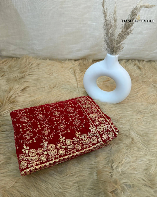 Red Embroidered Velvet Shawl – Luxe Winter Collection | NT-VS-02