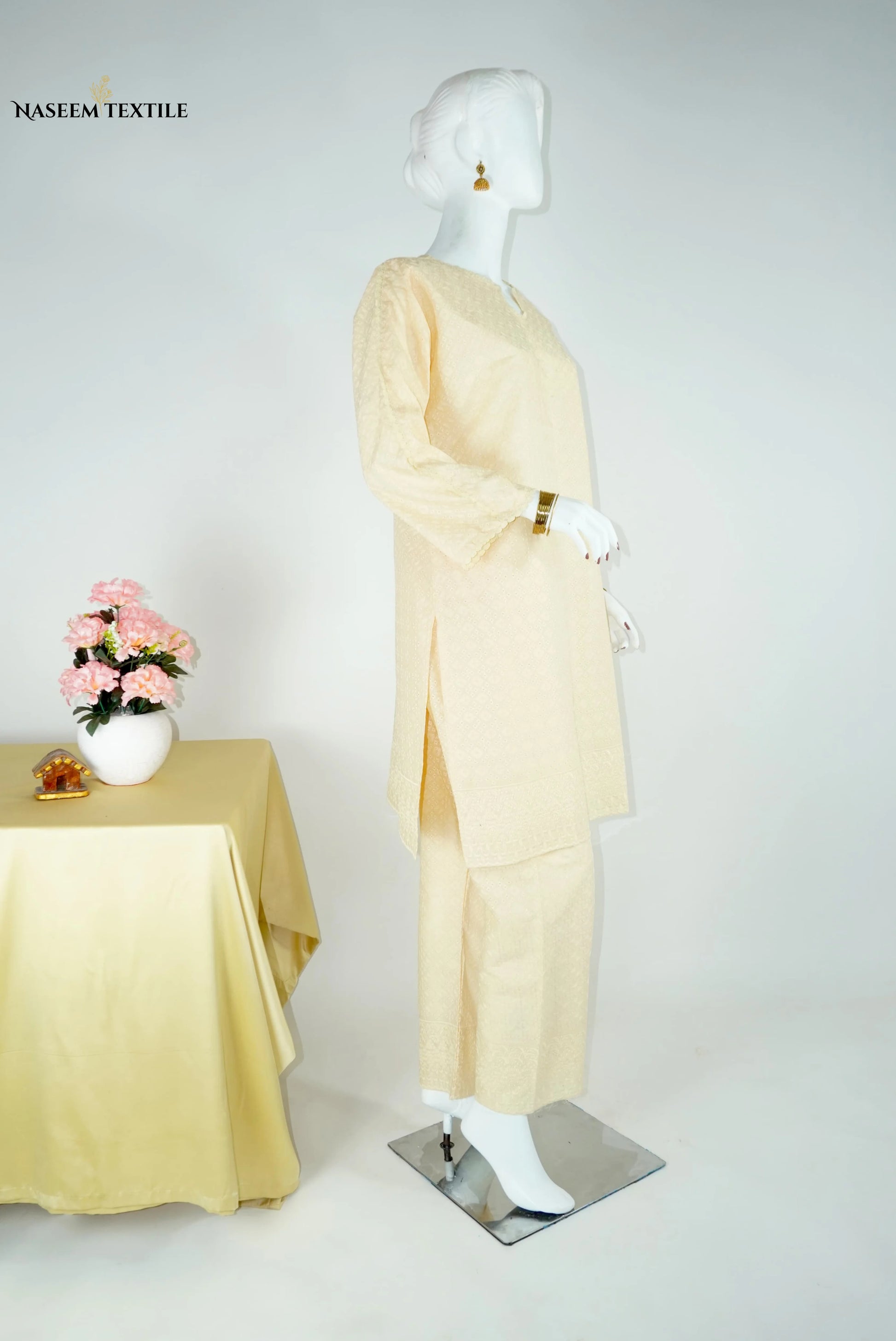 Everyday Luxe - Cream Beige Chikankari 2-piece Stitched Suit for Women | Kurta & Trouser | NT-WS03