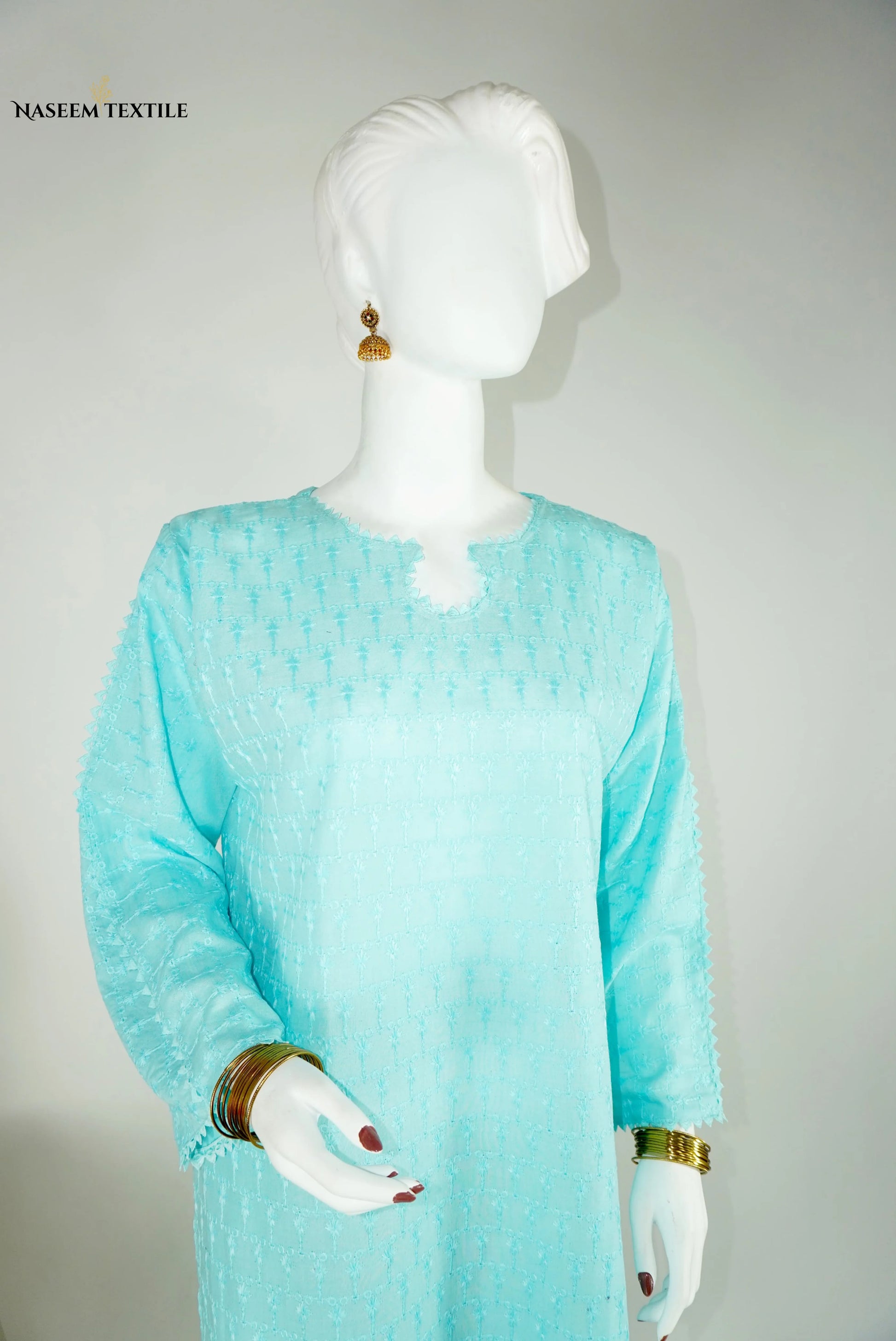 Step into timeless elegance with our Everyday Luxe – Sky Blue Chikankari 2-Piece Stitched Suit. Designed for the modern woman, this outfit features all-over intricate chikankari embroidery on a breathable cotton base, with a beautifully detailed heavy border that adds sophistication and charm.