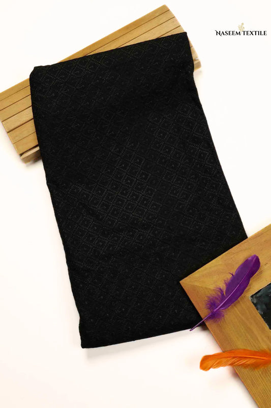 Black Chikan Kari Fabric – Wholesale at just 600 PKR/Yard (15 Yards Per Bundle)