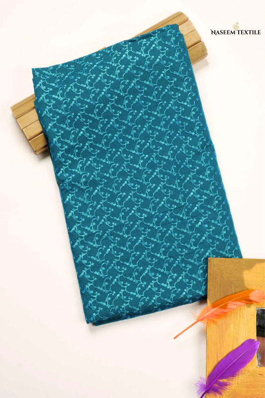 Lagoon blue Chikan Kari Fabric – Wholesale at just 600 PKR/Yard (15 Yards Per Bundle)
