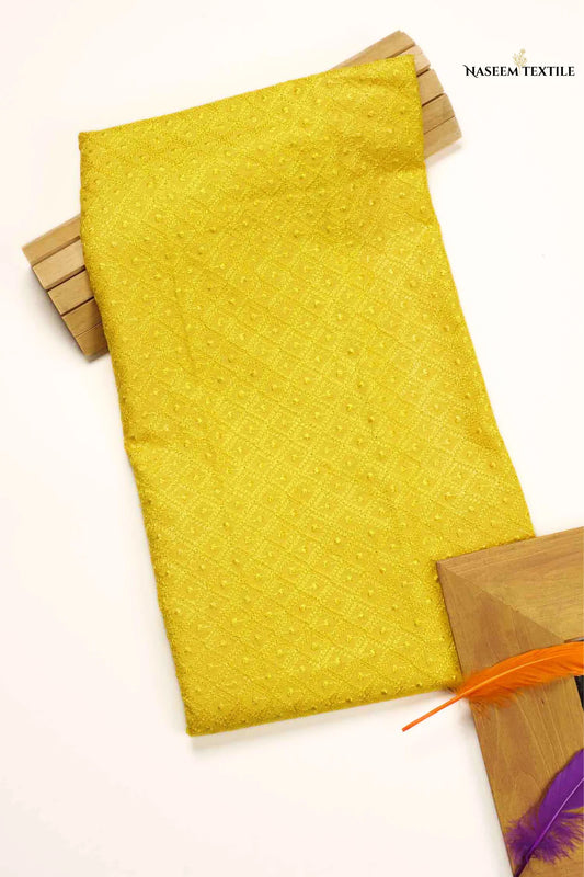 Lemon Yellow Unstitched Chikankari Kurta Fabric for Men | NT-M13