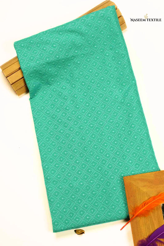 Aqua Green Chikan Kari Fabric – Wholesale at just 600 PKR/Yard (15 Yards Per Bundle)