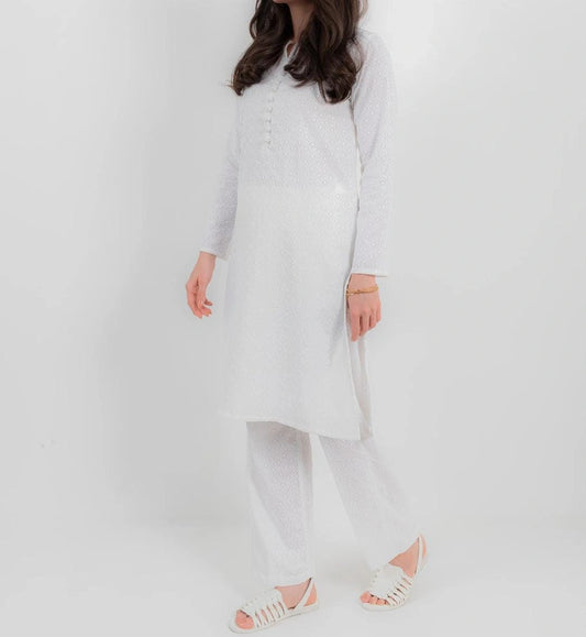 White Unstitched Chikankari 2-pcs Suit for Women| Classic Embroidery NT-WU4