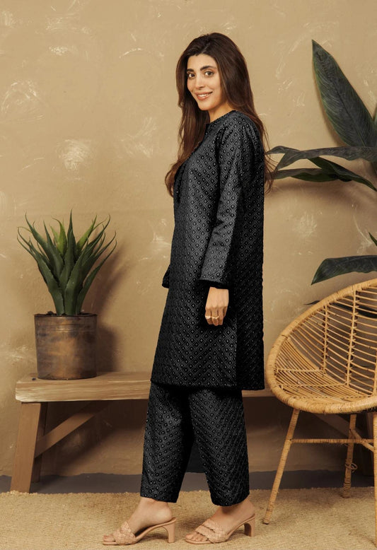 Black Unstitched Chikankari 2-pcs Suit for Women| Classic Embroidery NT-WU6
