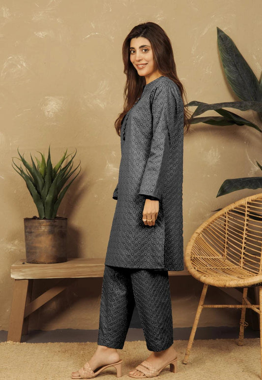 Dark Grey Unstitched Chikankari 2-pcs Suit for Women| Classic Embroidery NT-WU2